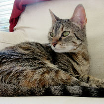DeGats se hizo cargo de mi. Llegué muy asustada, bufaba y desconfiaba de los humanos. Ahora estoy en una casa acogida y estoy soltándome y dejando que me mimen y me quieran. Es una acogida